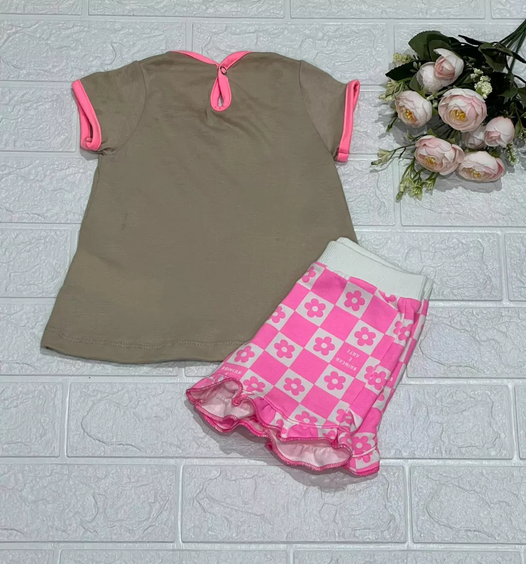 Esse conjunto é aquele que não pode faltar, 100% algodão, shorts em moletnho com detalhes em babado para aumentar ainda mais o charme, camiseta em fio penteado com botão atrás para facilitar a vestimenta das nossas pequeninas.