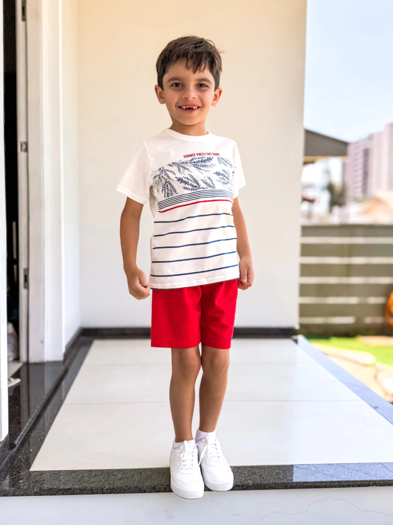 Conheça o Conjunto infantil com camiseta e shorts, perfeito para o conforto e o estilo dos pequenos! Produzido em tecido leve e macio, garante liberdade de movimento para as brincadeiras do dia a dia. A camiseta possui modelagem prática e o shorts conta com elástico na cintura para um ajuste ideal. Ideal para dias quentes, combina facilidade de vestir com durabilidade, sendo a escolha certa para o guarda-roupa infantil. 100% algodão, maciez e conforto garantido.