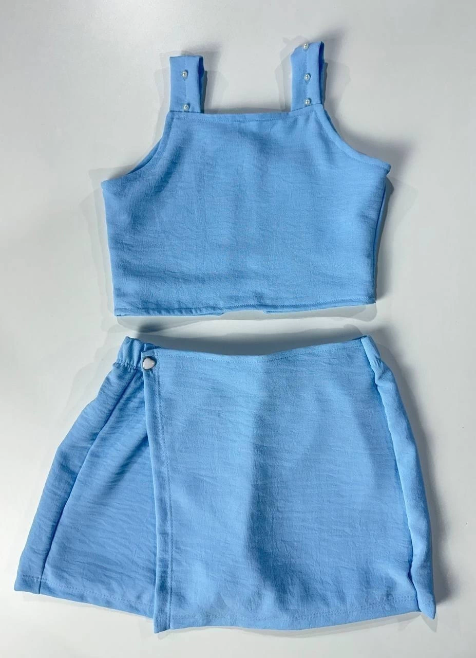 O Conjunto Manu ref 8317 é simplesmente impecável! Composto por cropped e shorts saia, este conjunto traz um toque de elegância graças às pérolas delicadamente aplicadas nas alças. Confeccionado em tecido Air Flow, que não amassa e oferece extremo conforto, é perfeito para meninas que adoram estilo e praticidade. Disponível em três lindas opções de cores, é a escolha ideal para quem busca charme e conforto em uma peça única.