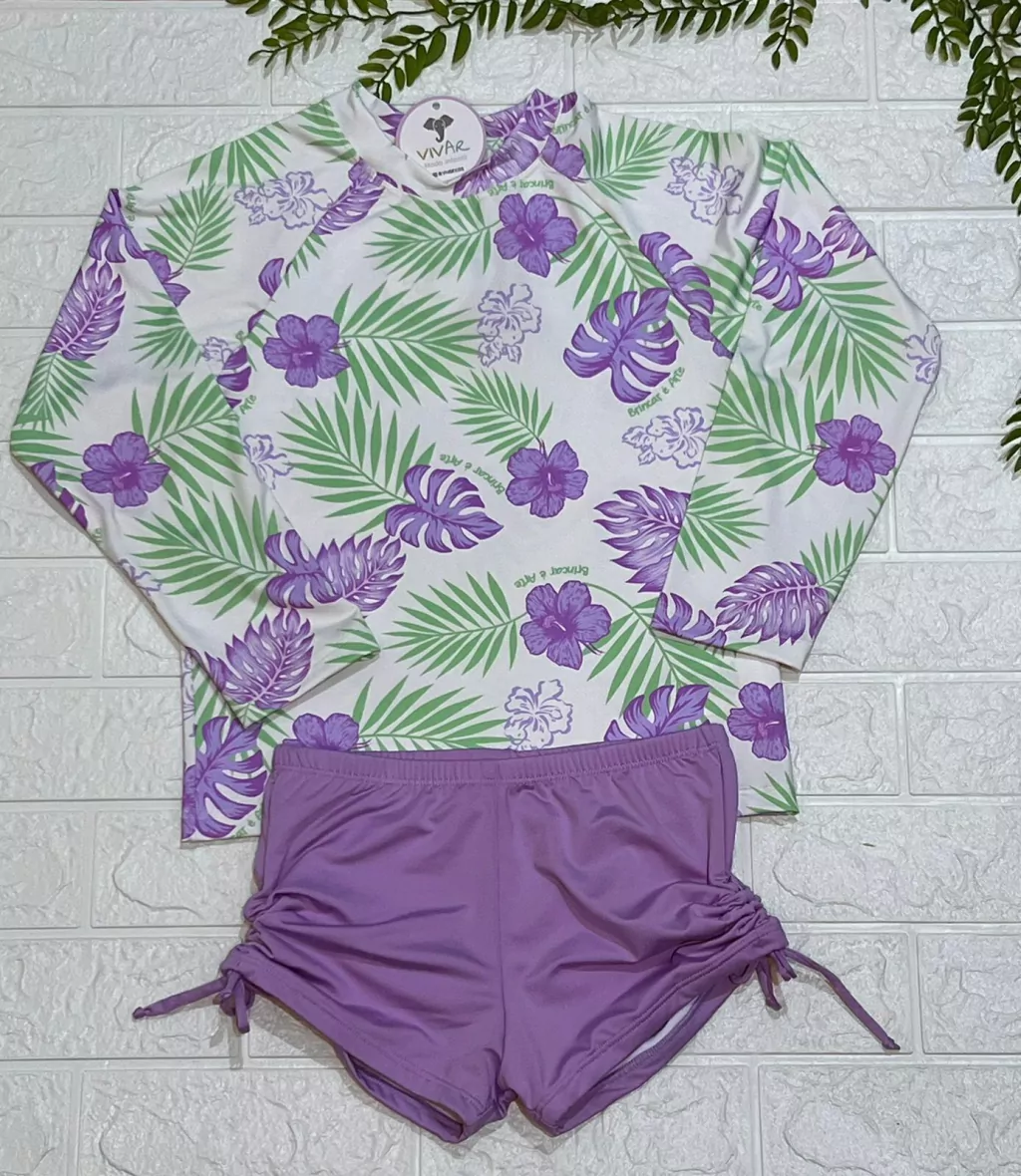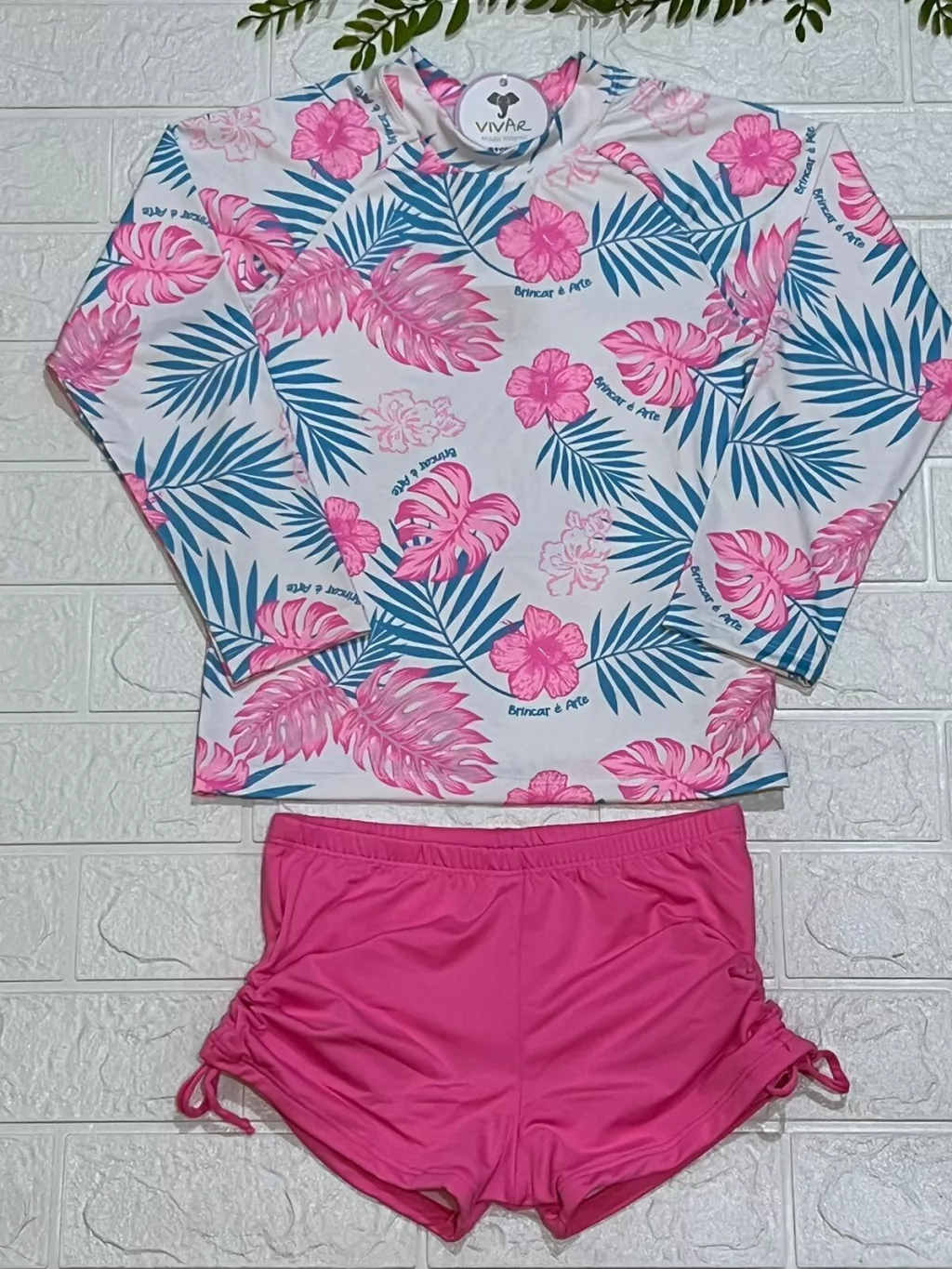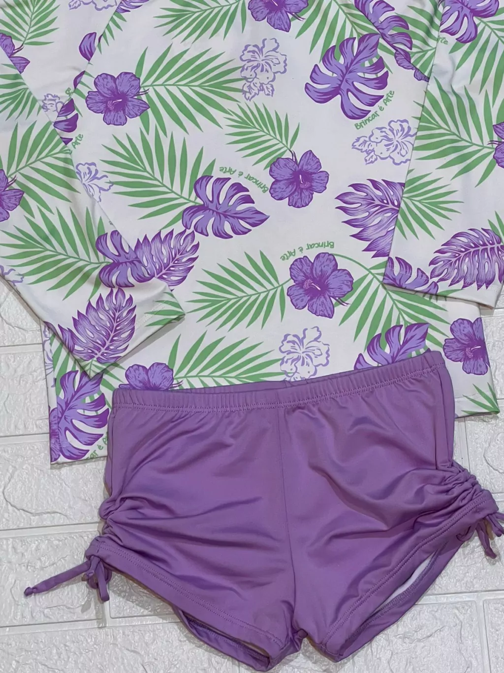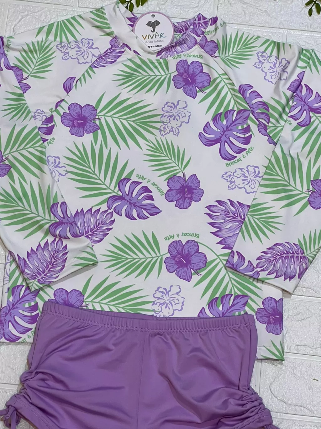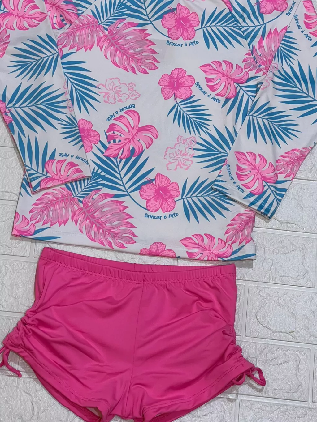 Conjunto praia com proteção UVA e UVB super confortável, facil de vestir, calcinha com regulagem, podendo fazer mais shortinhos ou não, lindíssimo, confortável e perfeito para brincar e se divertir muito.