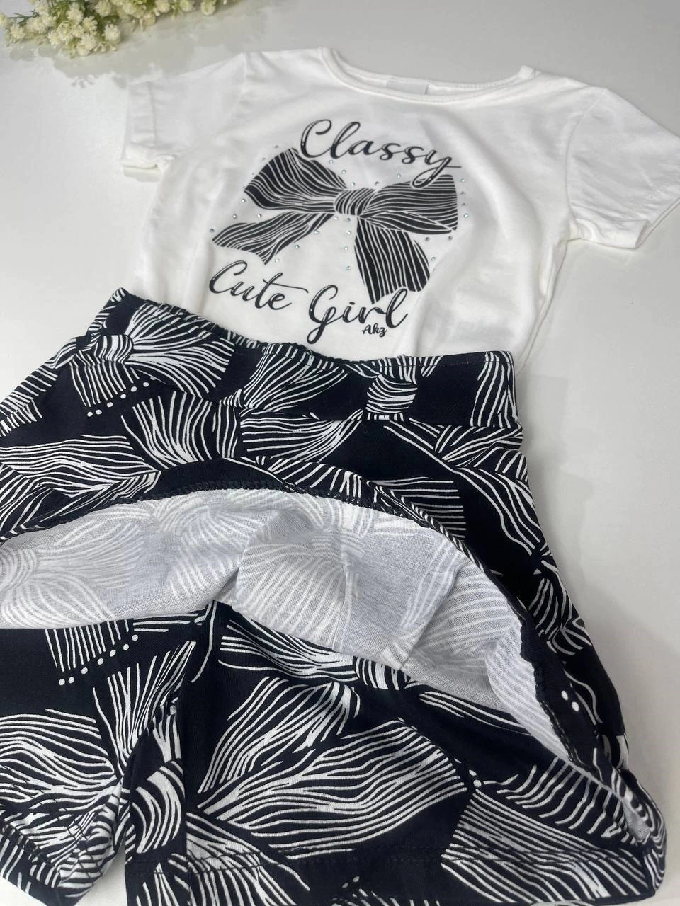 Conjunto com short saia e blusa 100% algodão , trazendo total conforto e leveza , detalhes de aplicação na blusa, tornam esse conjunto alem de extremamente confortável uma delicadeza.