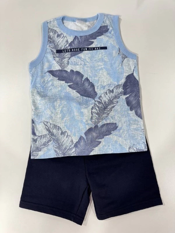 Prepare-se para deixar seu pequeno ainda mais charmoso com o Conjunto Verão ref 19215! Este conjunto é composto por uma regata lindíssima feita de 100% algodão, que garante conforto e frescor nos dias quentes. O short em moletinho complementa o look, proporcionando liberdade total para os meninos brincarem à vontade.