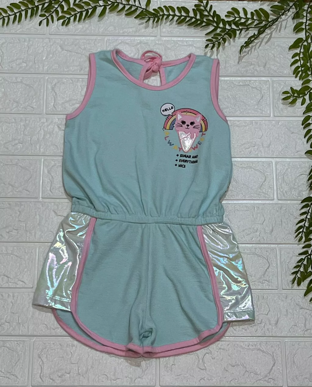 Esse macaquinho é lindo demais com amarração na parte superior traseira, com aplicação de detalhes do sorvete, super leve e fresquinho.