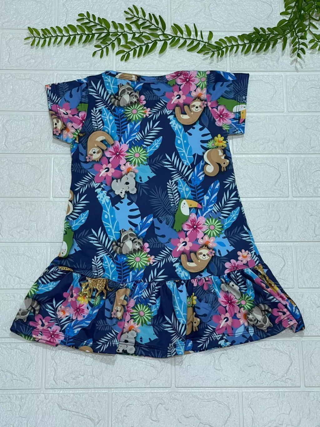 Esse vestido eu queria um pra mim, de microfibra com estampa super colorida, fresquinho, não amassa, seca rápido e não precisa passar, extremamente confortável.